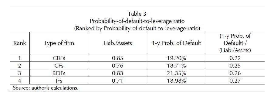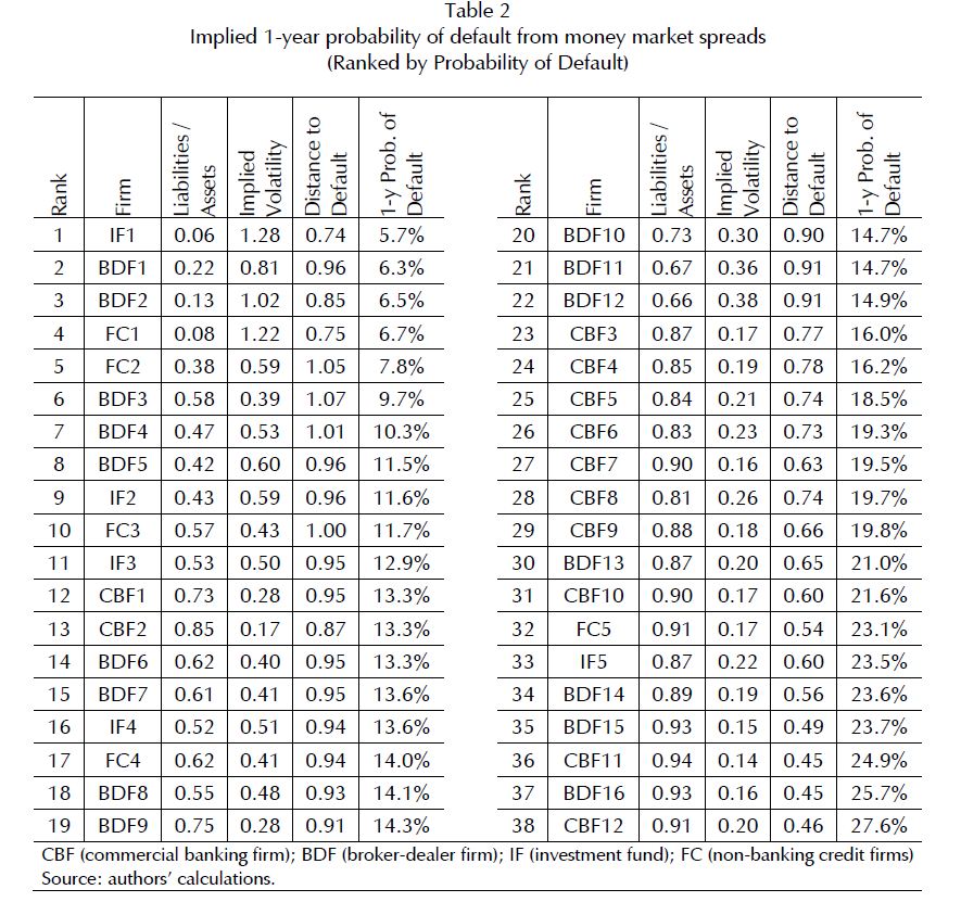 Results comprise a richer set of (38) banking and non-banking firms. As expected, default