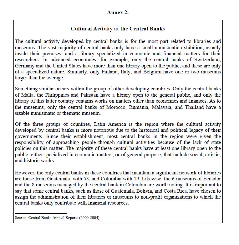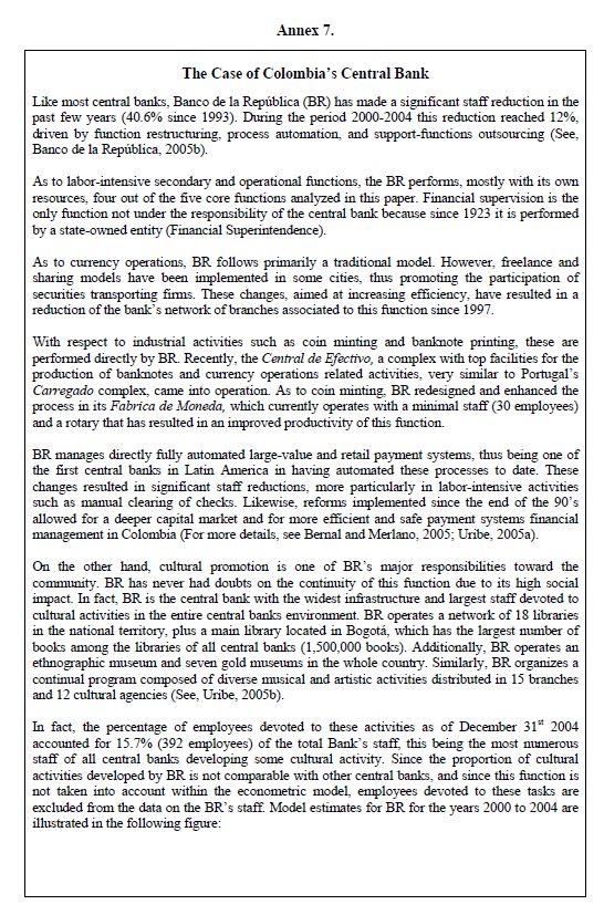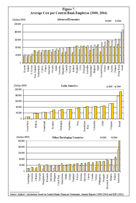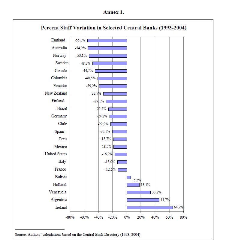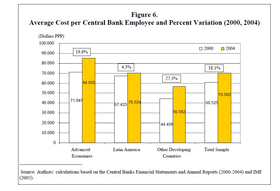 During the period 2000-2004 central banks sustained a generalized reduction in their staff, which was accompanied, in most cases, with significant increases in staff costs. This could obey to an enhanced interest of central banks in focusing on their core