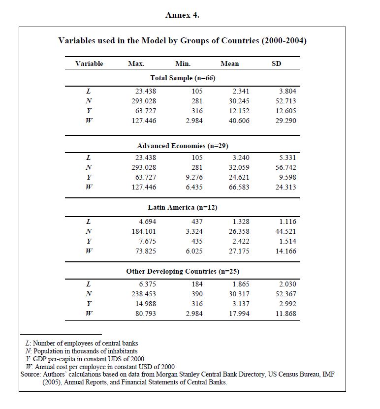 Staff, functions, and staff costs at central banks: an international comparison with a labor-demand model