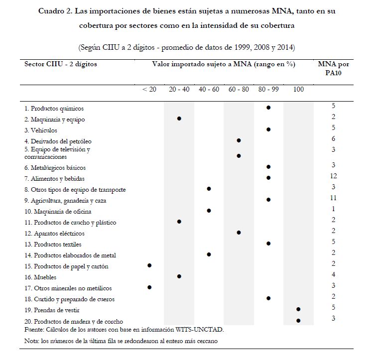 La cadena del comercio internacional de mercancías incluye los costos de comerciar que involucran los costos de llevar un producto desde la fábrica en el país de origen hasta el consumidor final en el país de destino. Se pueden desagregar entre costos externos hasta el puerto de llegada y costos internos desde el puerto de llegada hasta el consumidor final. La literatura indica que estos costos son altos y destaca entre sus factores de origen a la cadena logística, la infraestructura y la facilitación al comercio que otorga la regulación y procedimientos para exportar e importar. Este estudio presenta los resultados sobre los costos de comerciar en el país para el período 1999-2012. Específicamente, se cuantifican los costos de importar una mercancía entre el país de origen y la bodega del importador, comparando el precio de esta en el país de origen (precio fob) con su precio en bodega en Colombia (precio del productor). Para realizar estos cálculos se utilizaron los microdatos reportados en la encuesta del índice de precios del productor y en los registros aduaneros de importaciones. Esta información permite desagregar estos costos en tres componentes: costos externos por transporte, derechos aduaneros pagados, y costos internos no arancelarios que incluyen, entre otros, el manejo de la mercancía en puerto, los gastos por trámites previos, procesos de inspección y nacionalización en aduanas, y costos de transporte interno. Los resultados revelan que los costos de importar cayeron a partir de 2007 y que su valor promedio para una muestra de productos agrícolas y manufacturados fue de 36 por ciento en 2012. También se presenta un estudio de caso de la importación de vino de un importador pequeño, el cual permite descomponer los costos de comerciar entre todos los eslabones de la cadena logística, desde el viñedo en el país de origen hasta el consumidor final en Bogotá.