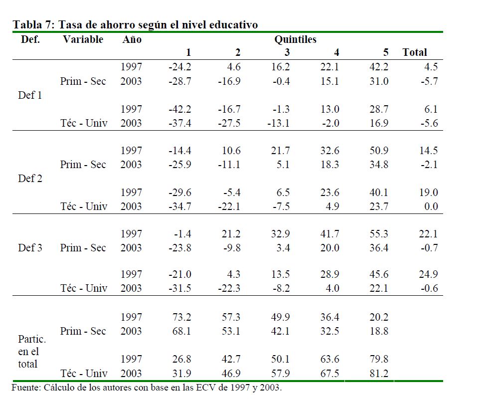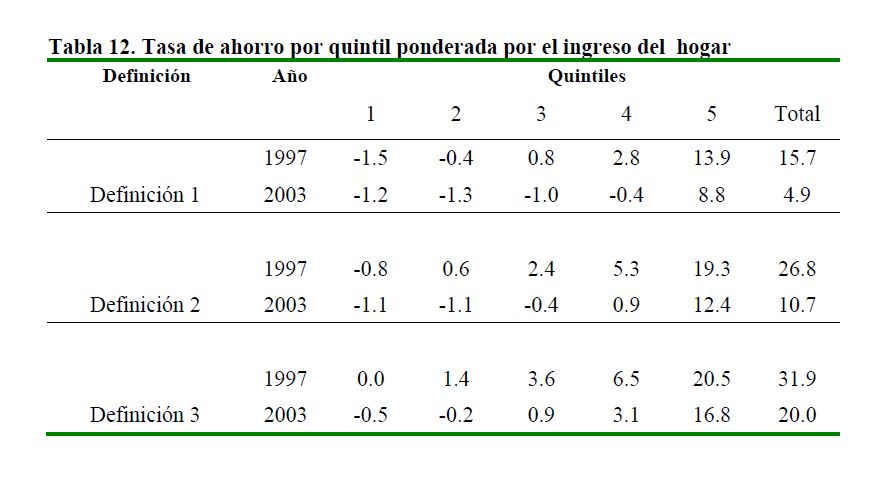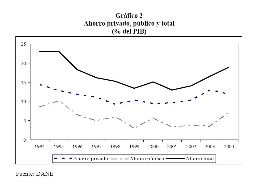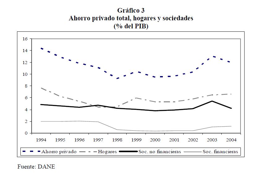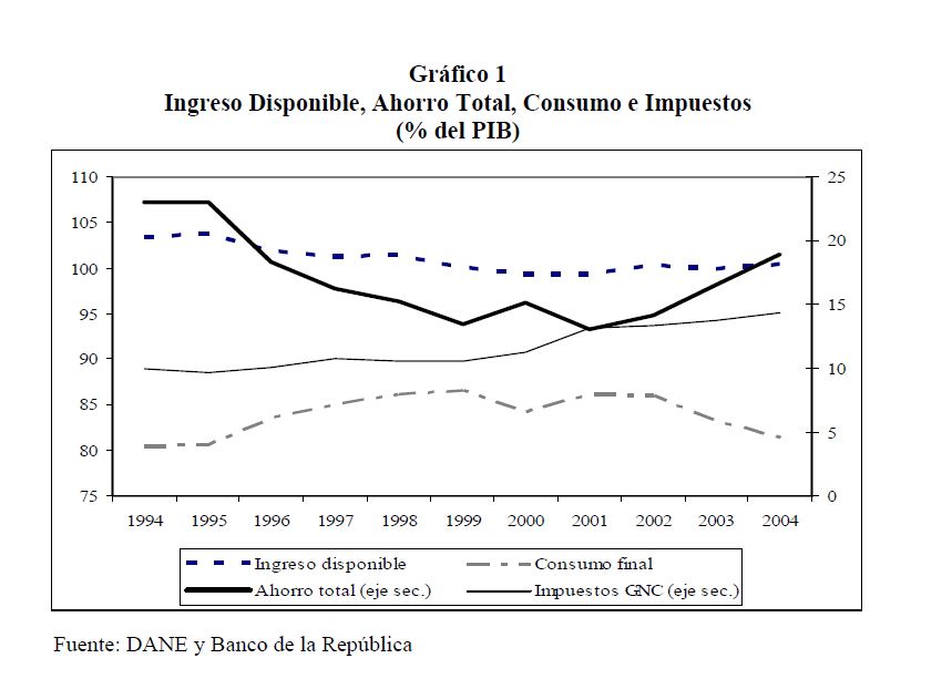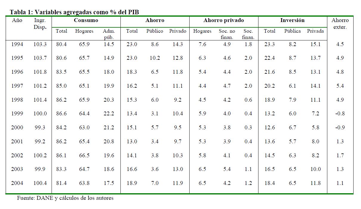 En este documento se presenta un análisis del comportamiento del ahorro de los hogares y sus determinantes, considerando una perspectiva de largo plazo para el periodo 1950-2004 y una de corto plazo a nivel microeconómico, utilizando la información de las encuestas de calidad de vida de 1997 y 2003. A nivel agregado, con base en un análisis de cointegración se encontró una relación de largo plazo entre la tasa de ahorro de los hogares, el PIB per-cápita, los impuestos directos y una medida de profundización financiera. A nivel microeconómico, se realiza un análisis de las tasas de ahorro agrupadas por diferentes características socioeconómicas de los hogares y para diferentes definiciones de ahorro considerando la inversión en capital humano y la compra de bienes durables. Adicionalmente, se presenta un análisis del comportamiento del ahorro a partir de la hipótesis del ciclo de vida, utilizado los perfiles de ahorro por año de nacimiento del jefe del hogar. Los resultados muestran que tanto el ingreso como el consumo registran un comportamiento de U invertida, sugiriendo que para el caso Colombiano no hay evidencia de que se cumpla la hipótesis del ciclo de vida. Finalmente, al comparar los datos de ahorro de los hogares a nivel agregado, con los datos obtenidos a partir de la información de las encuestas se encuentran diferencias que se pueden explicar por razones metodológicas y por el cambio en la distribución de los ingresos y de los gastos registrado entre 1997 y 2003.