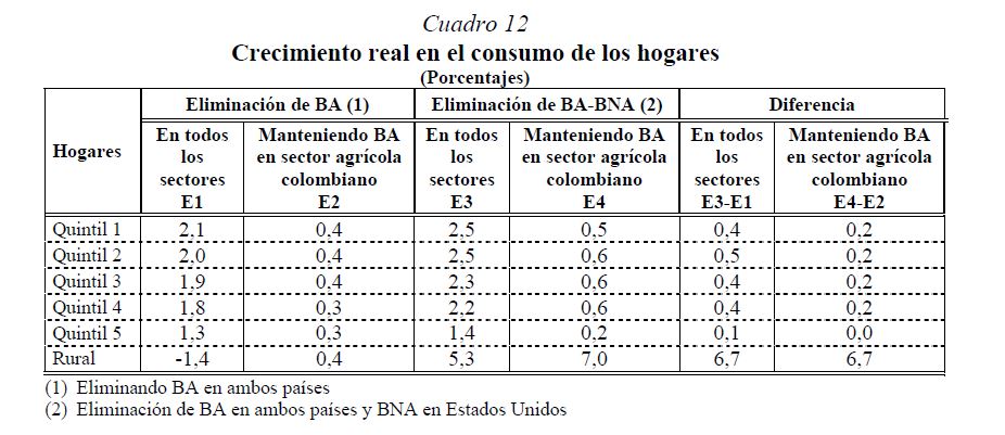 En este trabajo se hace una evaluación cuantitativa de los posibles efectos de un acuerdo de libre comercio (TLC) con Estados Unidos sobre la economía colombiana. Con este objetivo se utiliza un modelo de equilibrio general que representa el funcionamiento de la economía colombiana en condiciones de sustitución imperfecta entre los bienes domésticos y los bienes importados y exportados, rigideces salariales en el mercado laboral, y competencia imperfecta en los sectores industriales.Los resultados muestran que los efectos de un TLC sobre la economía colombiana dependen críticamente del grado en el cual se logren afectar las barreras no arancelarias vigentes en los Estados Unidos. Un TLC con disminución en estas barreras no arancelarias beneficiaría a los más pobres y tendría un efecto progresivo sobre la distribución del ingreso, contrario a lo que sostienen diferentes críticos. Sin embargo, esto depende del alcance del acuerdo. En especial, un TLC que mantenga las BNA sobre el sector agrícola en Estados Unidos tendría efectos negativos sobre los ingresos y el consumo de los trabajadores rurales, y en general sobre el sector agrícola colombiano.