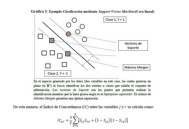 A partir de estados financieros de bancos y entidades asociadas se propone una cronología del ciclo financiero para Colombia, desde 1990 hasta mediados del año 2013, y se evalúa su interacción con el ciclo de negocios propuesto por Alfonso et al. (2012). Se usan dos acercamientos: el primero basado en reglas (Bry y Boschan, (1971) e Índices de Difusión) y el segundo fundamentado en la información contenida en los datos (Novelty Detection). Se encuentra evidencia que apoya la idea de una sincronización entre el ciclo financiero y el de negocios aunque las cronologías y demás características de cada uno dependen directamente de la definición y enfoque del ciclo que se adopte.