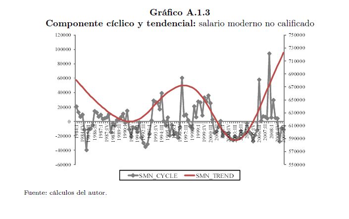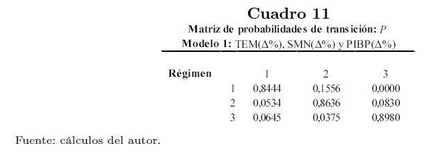 Este trabajo tiene como objetivo estimar las elasticidades de demanda de empleo moderno total y no calificado, haciendo énfasis en las asimetrías presentes en las distintas fases del ciclo económico colombiano. Para tal fin, se estiman modelos MS-VAR(p) siguiendo la metodología propuesta por Krolzig (1997) y Clements y Krolzig (2003). Los resultados confirman la existencia de dichas asimetrías en las demandas por empleo moderno total y no calificado, las cuales varían dependiendo del comportamiento de la actividad agregada de la economía, a decir, crisis, recuperación y auge. Específicamente, se encuentra que tanto para el empleo moderno y el empleo moderno no calificado, las relaciones empleo-PIB y empleo-salario no calificado, se intensifican en los periodos de crisis. Así mismo, la elasticidad empleo-salario aumenta (en valor absoluto) para el trabajo no calificado en los periodos de auge.