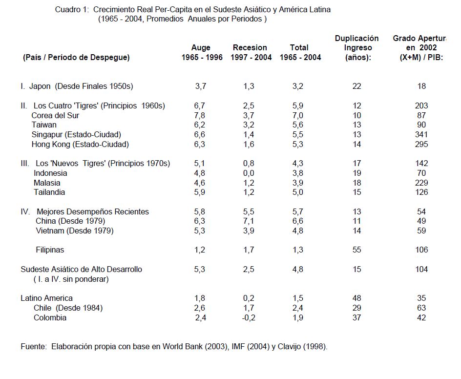 Las discusiones TLC-ALCA hacen pertinente revisar los problemas de crecimiento, apertura y consolidación institucional en Colombia. Dichas negociaciones trascienden los temas arancelarios e incluyen derechos de propiedad y organización institucional. El crecimiento del ingreso real per-capita de América Latina presenta un rezago abismal respecto al del Sudeste Asiático (1,5% vs. 4,8% anual durante 1965-2004), agravándose durante el periodo post-crisis 1997-2004. Mientras Asia ha duplicado su ingreso per-capita cada quince años, América Latina ha tenido que esperar casi medio siglo y Colombia cerca de 40 años.Las negociaciones TLC-ALCA posibilitan modernizar nuestra economía y mejorar la organización institucional. Ningún país en vías en desarrollo ha logrado consolidar su crecimiento sin volcarse sobre el mercado externo. Para sostener el camino de desarrollo no existe formula diferente a la de aplicar buenas políticas económicas: baja inflación, tasas de cambio flexibles, un buen régimen tributario (con adecuada progresividad social), descentralización fiscal. Esto se verá reforzado a medida que se mejore la organización Estatal y es aquí donde las negociaciones internacionales deben constituirse en un buen “anclaje” institucional.