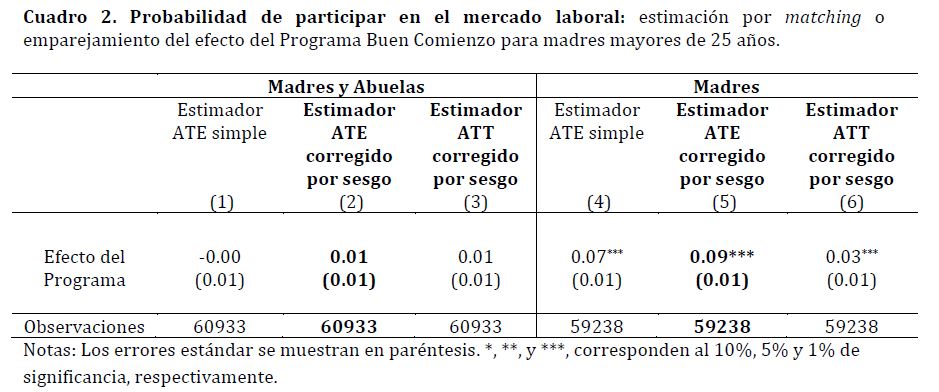 Efectos laborales de los servicios de cuidado infantil : evidencia del programa buen comienzo