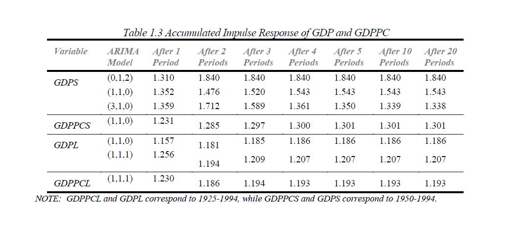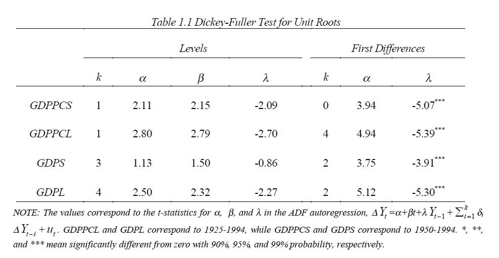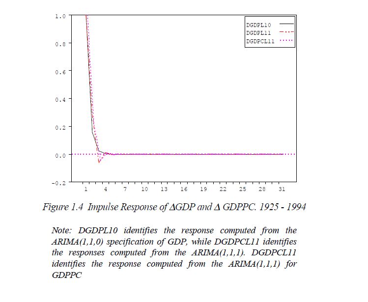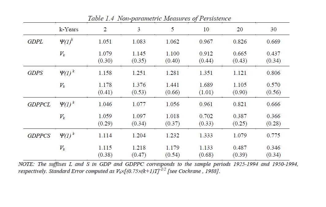 This paper deals with the size of the random walk property of Colombia´s output in two periods 1925-1994 and 1950-1994. GDP and GDPPC were both found to be integrated of order one a result which is very well known. The sequences are highly persistent, spe