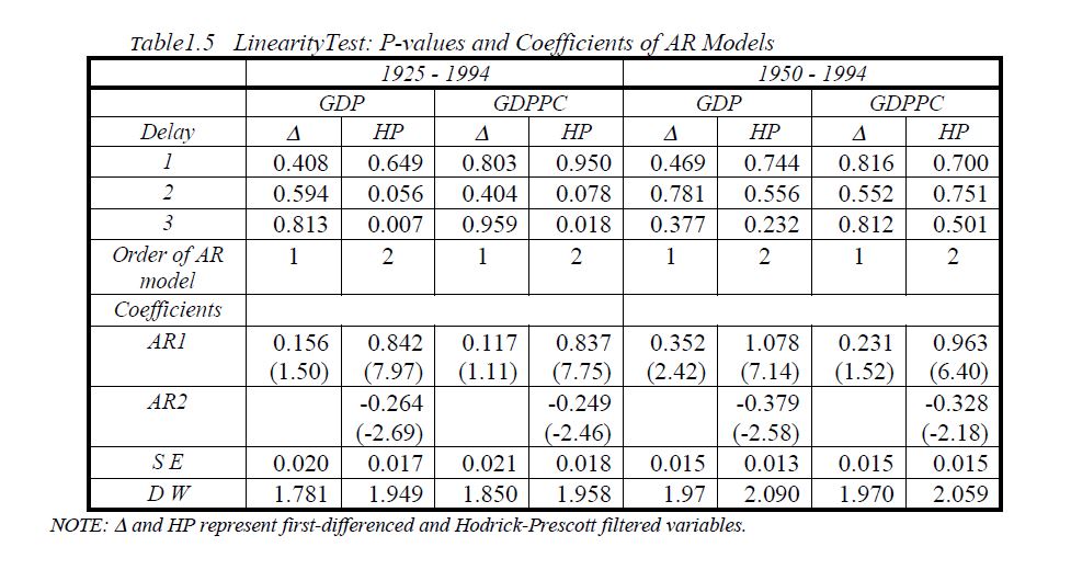 Some univariate time series properties of output