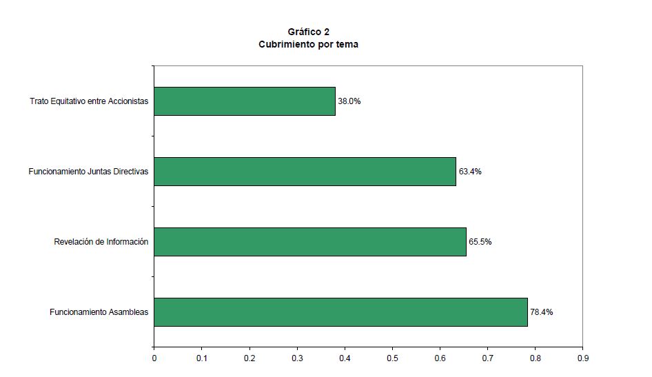 El trabajo evalúa el estado de las prácticas de gobierno corporativo en las empresas que negocian acciones ordinarias en la Bolsa de Colombia. Esta tarea se lleva a cabo mediante la construcción de un Índice de Gobierno Corporativo construido con información pública. Por otra parte se mide el impacto que las buenas prácticas de gobierno corporativo tienen sobre la relación del valor de mercado al valor en libros de las empresas ("q" de Tobin).