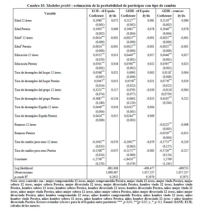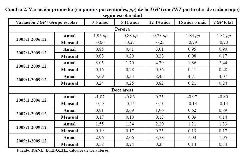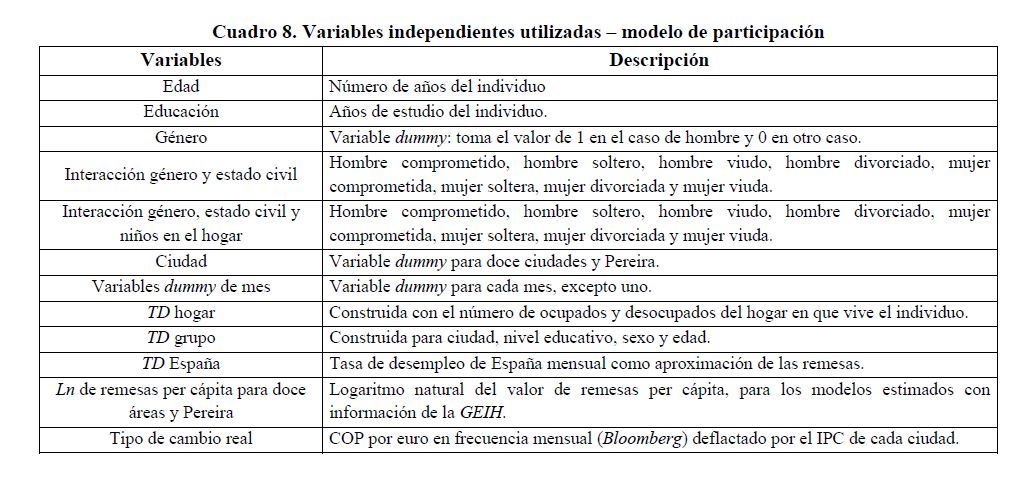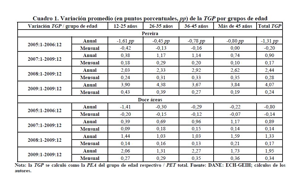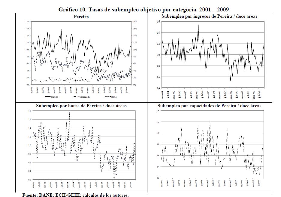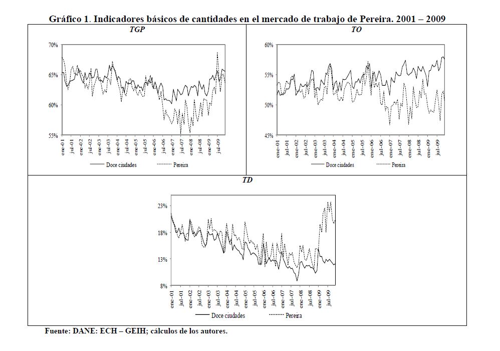 Este documento tiene como objetivo establecer las causas que han llevado a Pereira a ubicarse como la ciudad con la tasa de desempleo más alta, entre las 13 principales ciudades de Colombia. Para ello, se presentan estimaciones econométricas de modelos de participación y demanda laboral, utilizando información de las 13 principales ciudades y sus áreas metropolitanas reportadas en la Encuesta Continua de Hogares para los períodos 2001:01 a 2006:06 y la Gran Encuesta Integrada de Hogares para los períodos 2006:07 a 2009:12. Nuestros resultados indican que, en buena medida, la alta tasa de desempleo de Pereira se explica por la crisis de España ya que su tasa de desempleo y las remesas que provienen de allí afectan la probabilidad de participar en el mercado de trabajo de Pereira. Desde el punto de vista de la demanda de trabajo, los aumentos del salario mínimo pueden ser incompatibles con el bajo nivel educativo de la población y hacer que la mano de obra parezca costosa en relación con su productividad.