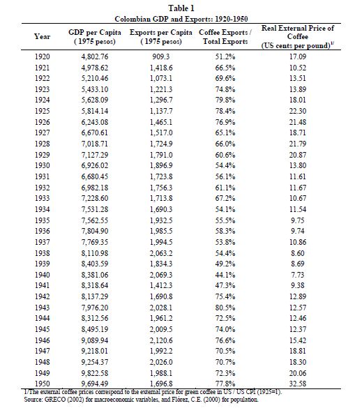 During the 1920s, the Colombian economy experienced the highest rate of growth in its history. The economic reforms of 1923 (the central bank, gold standard, banking legislation, fiscal reorganization), the coffee boom, and the unprecedented influx of for