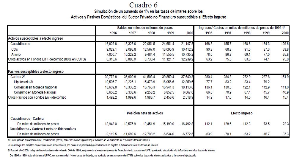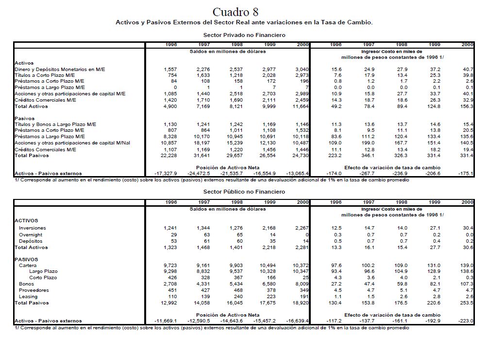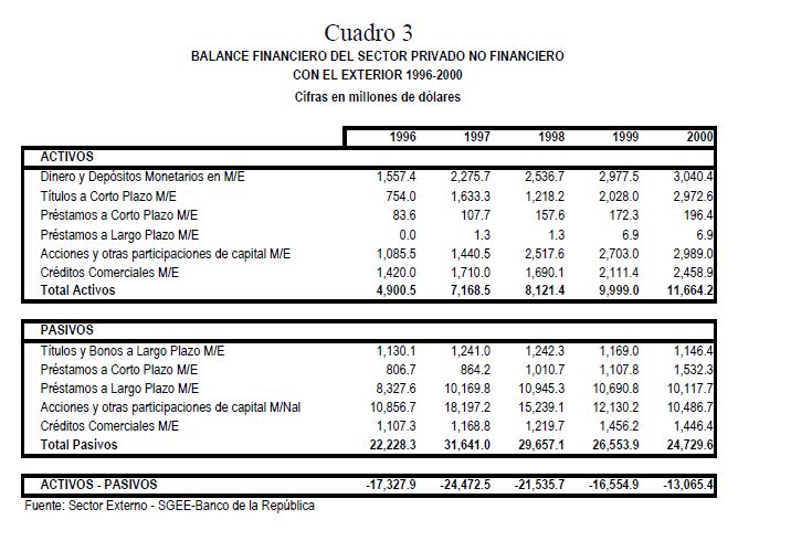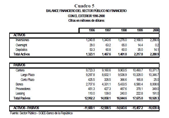 Estimación del efecto ingreso sobre los balances financieros de los sectores público y privado: 1996-2000