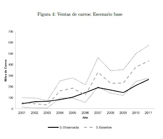 El objetivo de este documento es evaluar el efecto de los impuestos, la tasa de cambio y el ingreso de los hogares en la demanda colombiana de carros nuevos entre 2001 y 2011. Durante este periodo las ventas de vehículos se incrementaron y la composición de las ventas cambió sustancialmente. Nuestro análisis está basado en la estimación de un sistema de demanda que utilizamos para evaluar el efecto que tuvo la reforma tributaria de 2006, en la cual se modificó el IVA de los vehículos de distintos tipos, y el efecto que habrían tenido cambios en la tasa de cambio y en el ingreso. Los resultados sugieren que la reforma tributaria y los cambios en la tasa de cambio tuvieron poco efecto sobre la demanda agregada, mientras que el ingreso tuvo un efecto significativamente 05r.