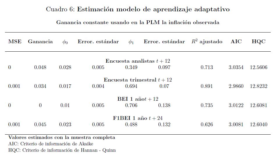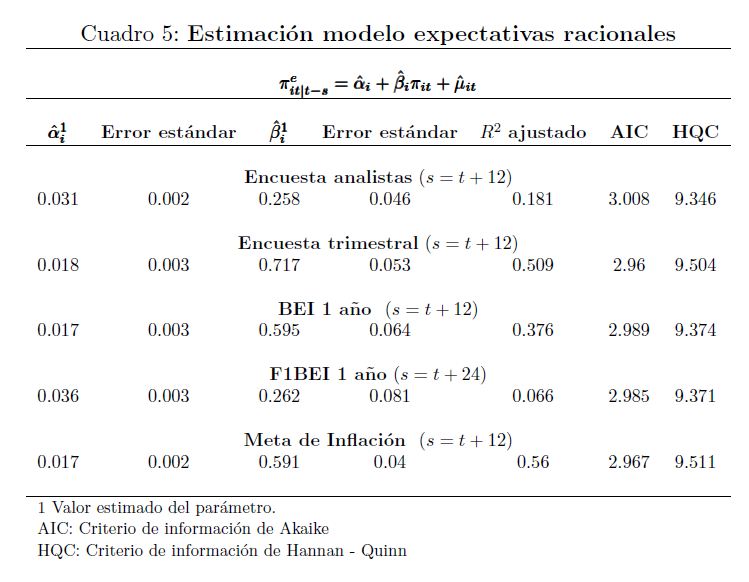 En este documento se analiza el mecanismo de formación de las expectativas de inflación en Colombia usando diferentes medidas de esta variable a uno y dos años. Los resultados indican que las expectativas se forman de manera adaptativa y racional. Hay evidencia que soporta la hipótesis de aprendizaje adaptativo. Las pruebas estadísticas sugieren que la meta de inflación ha ganado credibilidad y se puede considerar como una expectativa racional.