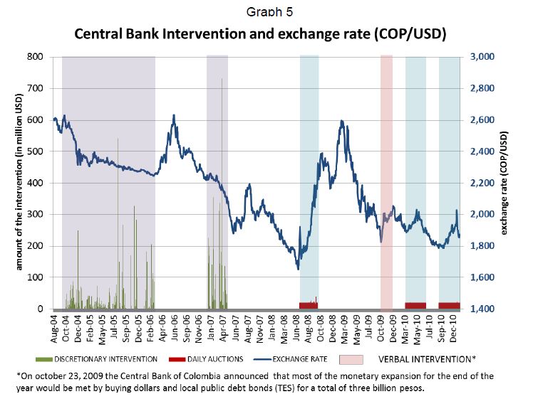The role of the exchange rate and the exchange rate regime in the monetary policy decision-making process in Colombia is described. The rationale for the intervention of the Central Bank in the FX market is explained and the experience in this regard is r