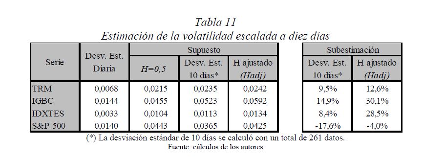 Dependencia de largo plazo y la regla de la raiz del tiempo para escalar la volatilidad en el mercado colombiano