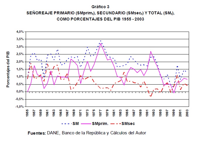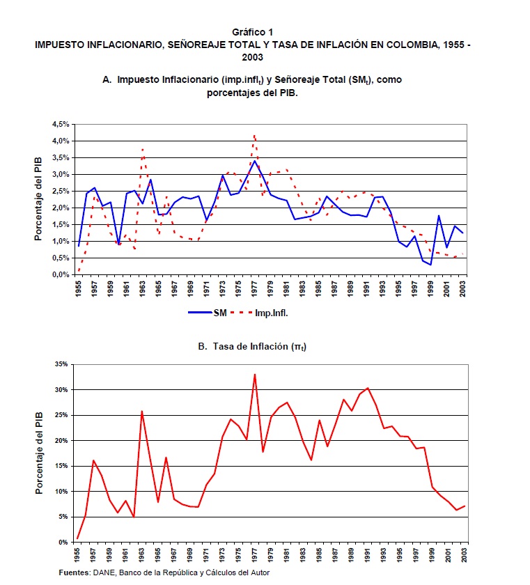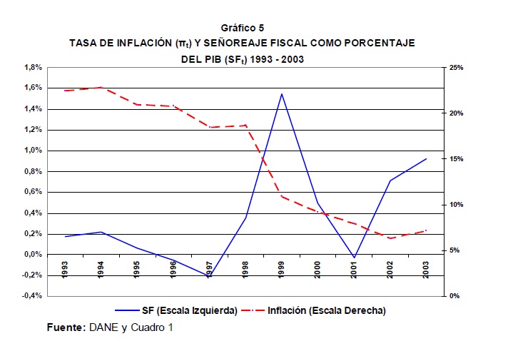 El propósito de este artículo es mostrar que, en contra de lo que muchos analistas preveían hace pocos años, las finanzas públicas en Colombia han obtenido un beneficio significativo del proceso reciente de reducción de la inflación. El menor ritmo de crecimiento de los precios ha estimulado la demanda por saldos monetarios reales y ha aumentado por esa vía el señoreaje total generado por el Banco de la República. Por esa razón, la magnitud del señoreaje se mantiene en niveles relativamente altos, pese a drástica contracción en los encajes requeridos al sistema financiero que tuvo lugar desde mediados de la década de los noventa y a la consiguiente reducción en esta fuente de señoreaje. Por su parte, los cambios en la utilización del señoreaje han permitido que la porción que beneficia directamente al gobierno -el señoreaje fiscal- aumente de manera notoria en el período reciente. Este beneficio fiscal, sin embargo, puede verse afectado negativamente en la medida en que una porción 05r del señoreaje total se destine a la compra de divisas para acumulación de reservas internacionales. Finalmente, el artículo cuantifica el beneficio que ha tenido la caída de la inflación sobre las necesidades de financiamiento del gobierno y la magnitud del déficit fiscal, a través del impacto de menores tasas nominales de interés.