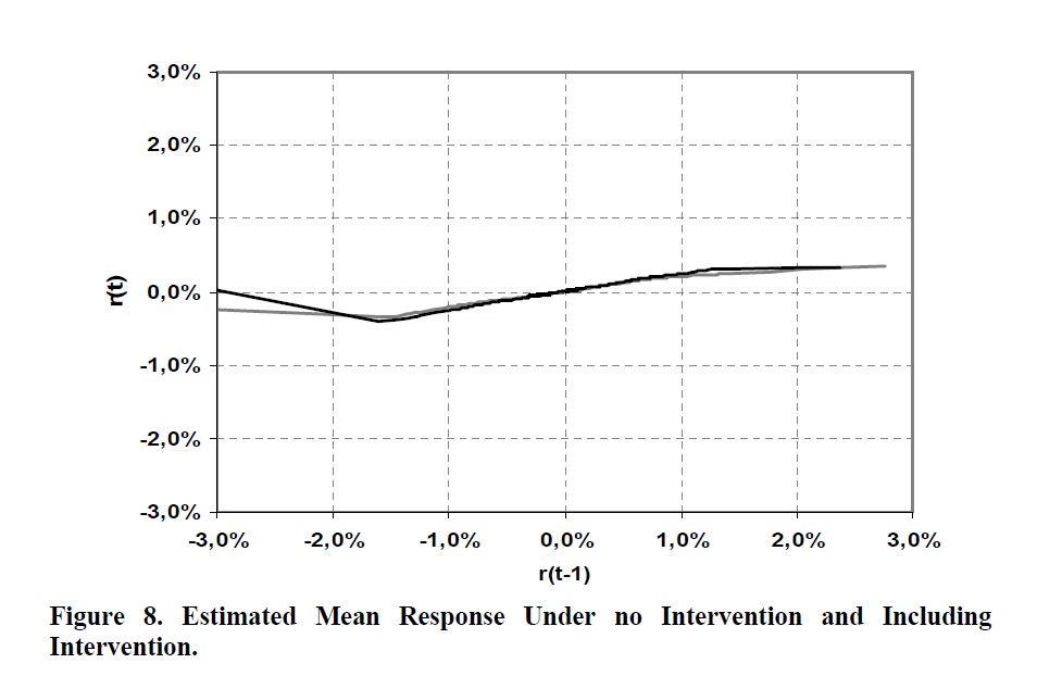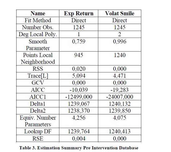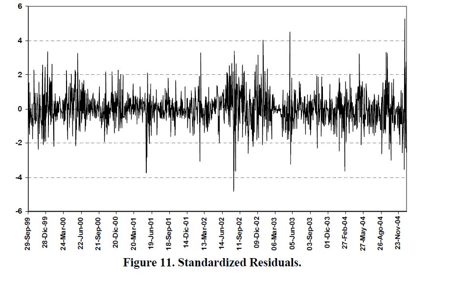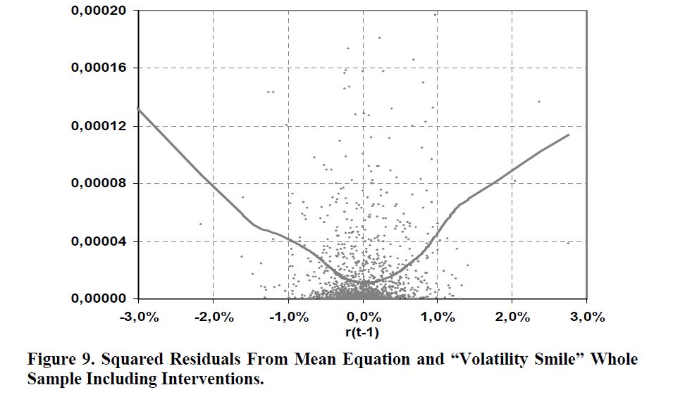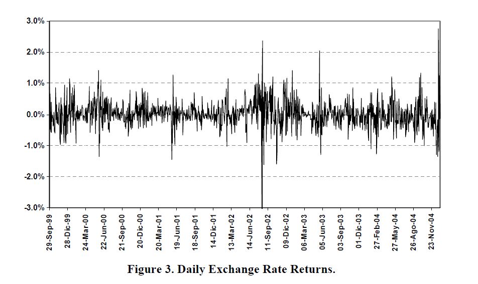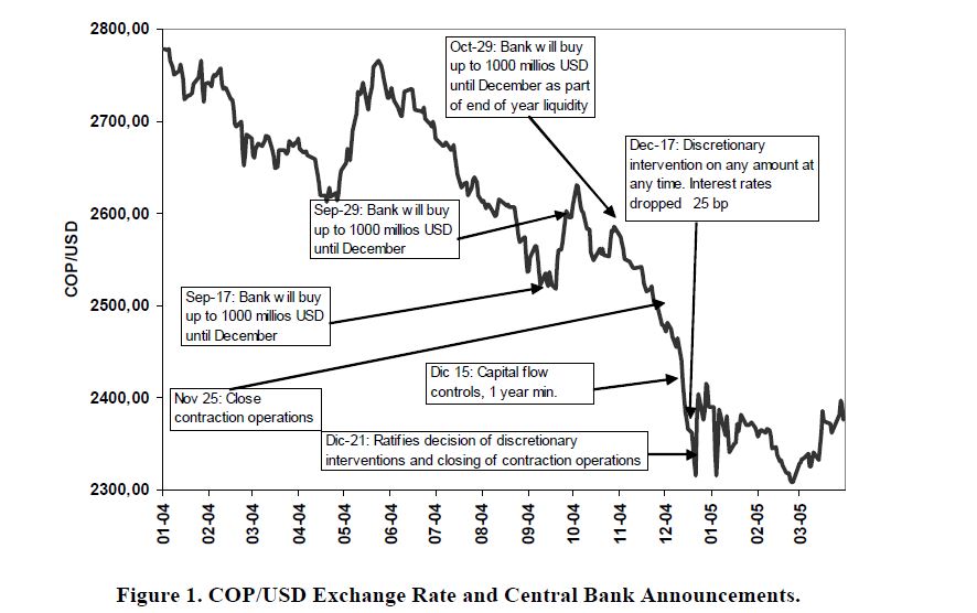 In this paper we estimated a volatility model for COP/US under two different samples, one containing the information before the “discretional interventions” started, and the other using the whole sample. We use a nonparametric approach to estimate the mea
