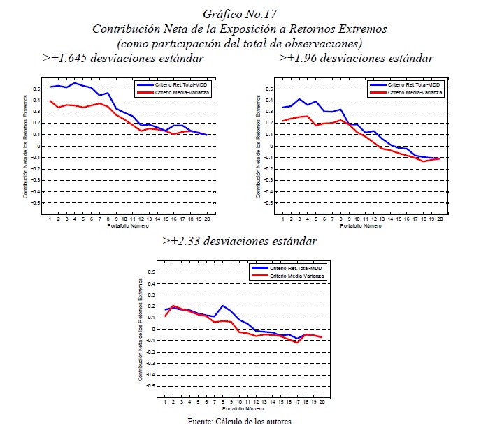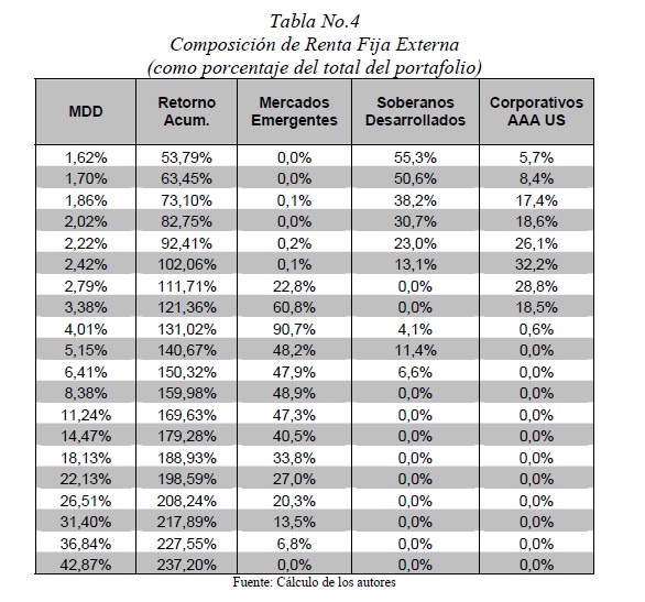 | dc.description | La práctica sobre políticas de inversión diferencia entre la definición de la composición del portafolio de referencia de largo plazo o benchmark y de los mecanismos de desviación en el corto plazo respecto a ese portafolio, en lo que se conoce como asignación estratégica de activos y asignación táctica de activos, respectivamente. Este documento se ocupa de revisar la práctica sobre asignación estratégica de activos, aplicada al caso de inversiones de lago plazo como lo son los Fondos de Pensiones Obligatorias, pero introduce en enfoque alternativo en lo que a la optimización del portafolio se refiere. En lugar de utilizar el criterio clásico de media-varianza, el cual es el común denominador de los modelos teóricos y académicos de optimización de portafolios, se aplica el modelo de retorno total-máximo drawdown, el cual evita varias de las conocidas limitaciones del criterio clásico y procura un mejor resultado del portafolio en el largo plazo. Los resultados corroboran los beneficios de seguir las fases que componen el proceso de asignación estratégica de activos, tales como la diversificación local, la diversificación internacional y la exposición cambiaria. Adicionalmente, los resultados obtenidos brindan evidencia de las ventajas que ofrece un enfoque alternativo como el de la optimización de portafolios en el espacio retorno total-máximo drawdown. | spa |