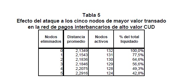 | dc.description | Las transferencias de fondos que se realizan entre los participantes en un sistema de pagos conforman redes de valor que, por su naturaleza, están expuestas a riesgos financieros de diverso género y, en particular, al potencial de riesgo sistémico. La incidencia que ello tendría sobre la estabilidad financiera, la transmisión de la política monetaria y la actividad económica son algunas de las razones que explican el interés de los Bancos Centrales por promover los objetivos de seguridad y eficiencia en los sistemas de pago. Los aportes de la física estadística en el análisis de redes complejas han permitido reconocer la estrecha relación existente entre la estructura, el funcionamiento de la red y su estabilidad. Soportado en esta rama de la física, este documento constituye una primera aplicación de la topología de redes al análisis de la red de valor que se conforma entre los participantes del Sistema de Pagos de Alto Valor CUD de Colombia. La identificación de la topología y de las propiedades de ésta red, junto con la cuantificación del impacto de algunos choques simulados sobre la estabilidad y el valor liquidado en la red, son los objetivos principales que persigue esta investigación. Se concluye que las eventuales perturbaciones simuladas tienen un efecto significativo sobre el flujo normal de los pagos, tanto por el resquebrajamiento de la infraestructura de pagos como por los problemas de coordinación que se derivan entre sus participantes. Con base en tales resultados es posible sugerir una serie de políticas encaminadas a garantizar el flujo normal de los pagos, ya sea mediante acciones preventivas que reduzcan la probabilidad de ocurrencia de interrupciones en el sistema o correctivas que permitan, ante la eventual realización de estas interrupciones, la pronta recuperación de la estabilidad de la red de pagos. | spa |
