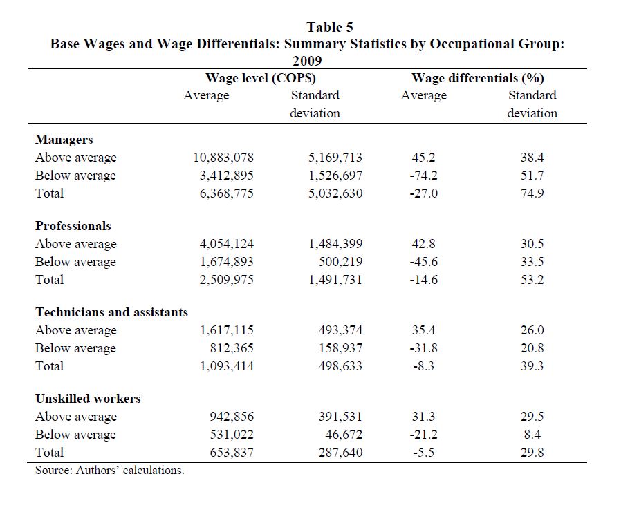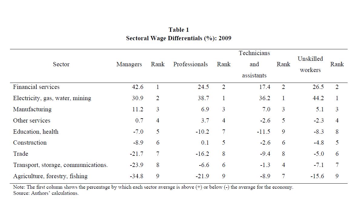 Wage differentials across economic sectors in the colombian formal labour market: evidence from a survey of firms