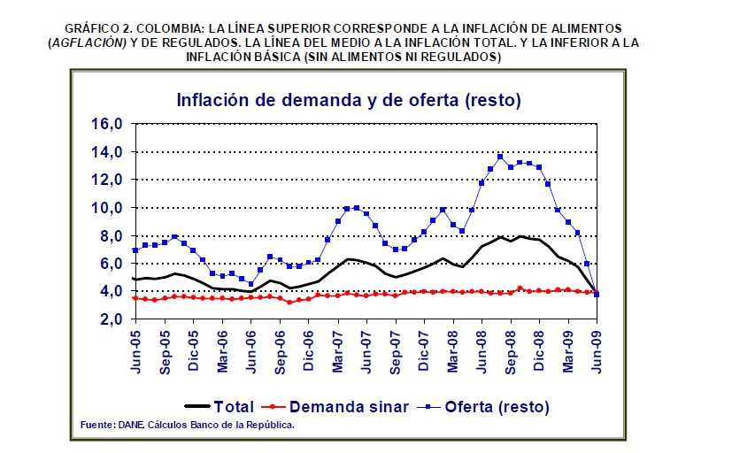 Durante los últimos dos años los bancos centrales que siguen el esquema de "inflación objetivo" incumplieron sus metas. La causa no fue la insuficiencia o posibles yerros de la política monetaria, cuyos instrumentos están diseñados para responder a movimientos de la inflación originados en cambios de la demanda interna de cada economía. En vez de ello, la desviación frente a las metas se explica primordialmente por el disparo de los precios internacionales de los alimentos, en particular granos y oleaginosas. Este choque de oferta, ante el cual la política monetaria resulta ineficaz, se debió, a su turno, a dos factores fundamentales: (a) El notable crecimiento de algunos de los mercados emergentes de 05r tamaño - en especial China e India -, y su consiguiente tránsito masivo hacia un régimen alimenticio mucho más rico en proteína animal. (b) La fuerte reacción de Estados Unidos y Europa ante el cambio climático, materializada en la producción y utilización de biocombustibles, tratando de mitigar sus nocivos efectos. Ambos elementos emplean las mismas materias primas: granos y oleaginosas. A pesar de que la recesión ha desinflado el impacto sobre sus precios, es muy probable que, una vez se consolide la recuperación de la economía global, en el futuro cercano aquellos vuelvan a generar severas presiones sobre la inflación. A fin de satisfacer la demanda, la oferta agrícola deberá aumentar 40 por ciento para el 2030 y 70 por ciento para el 2050. La siembra de nuevas áreas -en su 05ría en América Latina y África-, estará condicionada a la disponibilidad de agua; a la adopción de biotecnologías apropiadas; y al uso de tierras que, siendo aptas, se hallan ociosas o subutilizadas en ineficientes sistemas de ganadería extensiva. En conclusión: (a) Las metas del banco central se deben formular en términos de la inflación básica o "core inflation". Esto es, excluyendo los precios de los alimentos y los combustibles, a fin de evitar el riesgo de que la política monetaria se desvíe hacia el tratamiento de choques externos no controlables por la misma, y lesione de paso la estabilidad del sector real y el empleo. (b) A la larga sólo el cambio técnico estará en capacidad de vencer las presiones sobre los precios de los alimentos. (c) Se requiere inducir, mediante mecanismos impositivos, la creación de mercados de tierras a fin de ampliar la frontera cultivable a costos razonables, en contraposición a la acumulación de su tenencia para propósitos únicamente especulativos o rentísticos.