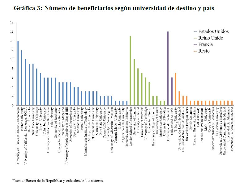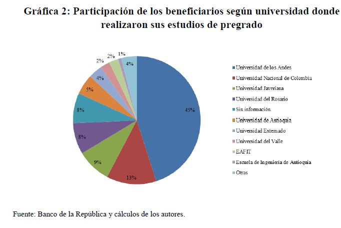 | dc.description | Desde 1980, el Banco de la República ha contribuido a la formación de los economistas del país a través de su programa de apoyos para estudios de doctorado y maestría en las mejores universidades del mundo. Este documento hace una descripción de este programa, caracterizando los beneficiarios del mismo en referencia a su distribución por género, universidad de origen y universidad de destino, entre otras variables. Asimismo presenta un análisis costo – beneficio de dicho programa, mostrando su alta rentabilidad en términos privados y sociales. | spa |
