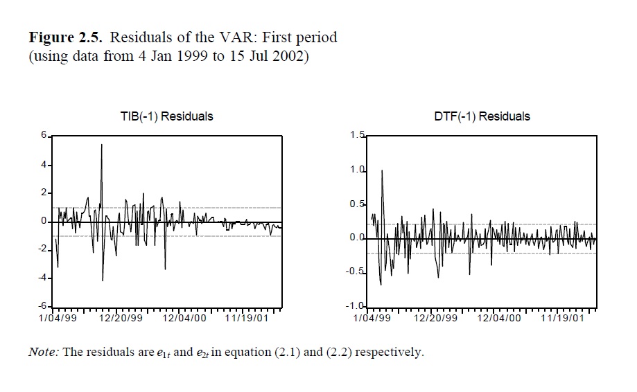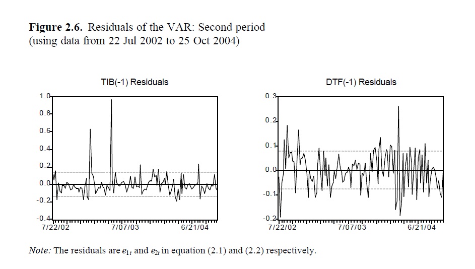 The 90-day DTF rate is the main benchmark interest rate in Colombia. Since mid-July 2002 this rate has remained more or less constant at around 7.8 percent. More importantly, it did not react to any of two 100-basis-point increases in the overnight repo