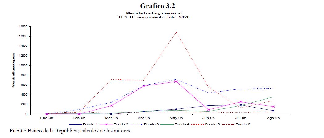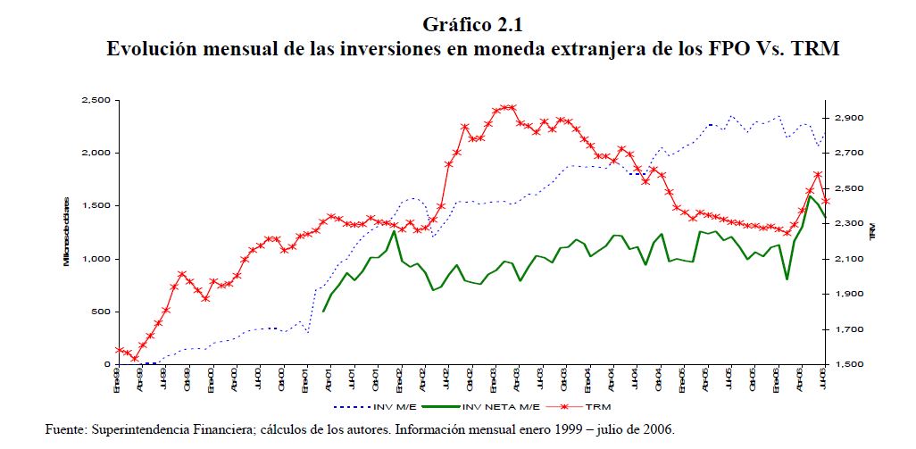 El tamaño relativo de las transacciones de las Administradoras de Fondos de Pensiones (AFP) frente a los demás participantes del mercado cambiario ha sido objeto de preocupación de académicos y ejecutores de política. Las AFP pueden transar grandes volúmenes, lo cual podría influenciar las decisiones de inversión de otros agentes, exacerbando presiones sobre los precios. Este documento estudia el impacto de las operaciones de los Fondos de Pensiones Obligatorias (FPO) sobre el tipo de cambio y el precio de los TES. Los resultados sugieren que los fondos de pensiones son bastante activos tanto en el mercado cambiario como en el de deuda pública interna; más aún, se evidencia una fuerte actividad de trading de corto plazo por parte de algunos fondos en estos mercados. Sin embargo, no se evidencia que los movimientos de distintos fondos estén positivamente correlacionados. Se concluye que sus operaciones tienen un grado de asociación fuerte con el movimiento del tipo de cambio y de las tasas de los TES tasa fija de largo plazo.