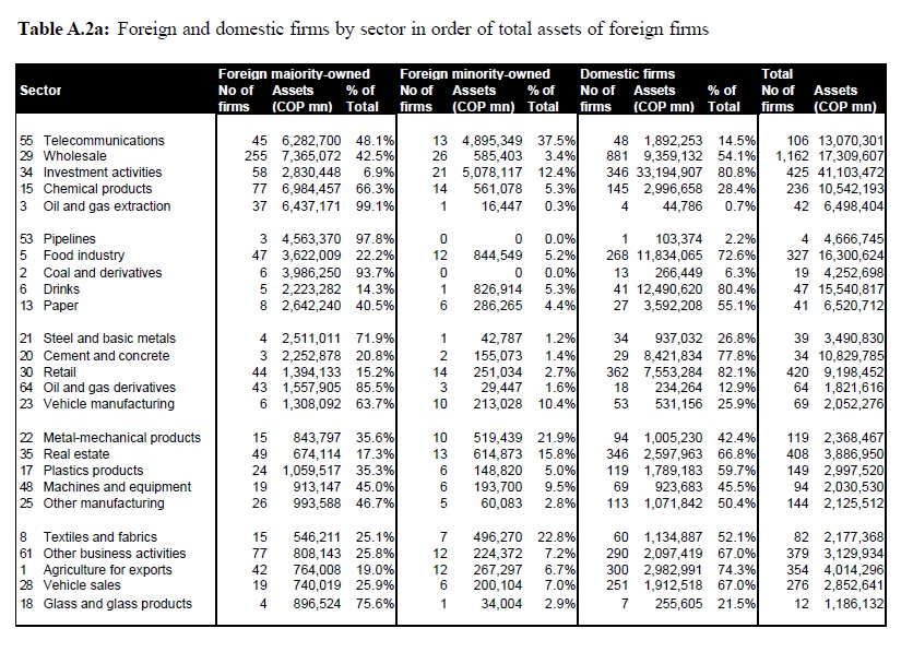 This paper studies foreign and domestic firms in Colombia and, in particular, whether these firms behave differently. The study uses a dataset containing the 2003 balance sheets and income statements for some 7,001 firms. The dataset was obtained from t
