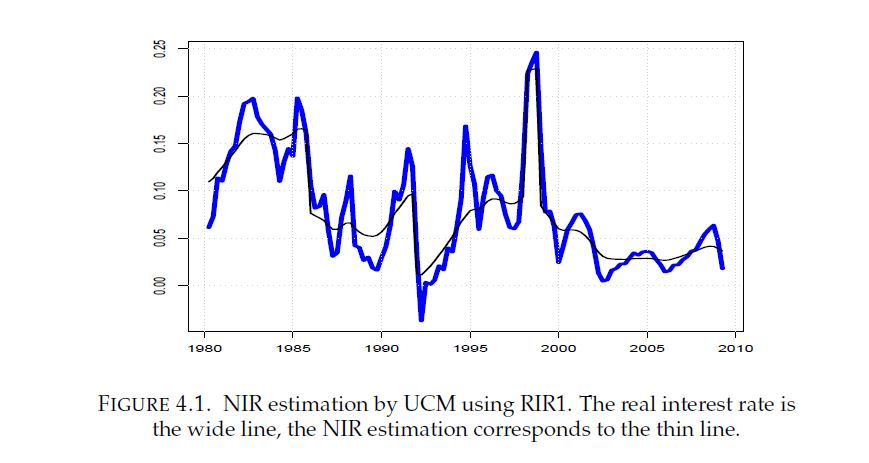 Three methodologies to estimate the natural interest rate, NIR, are implemented for the Colombian economy. Two methods are statistical filters and the third involves some economic theory. The first method is based on unobserved components decomposition of