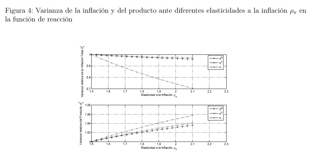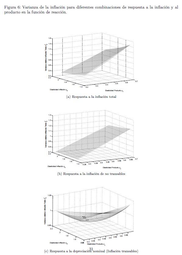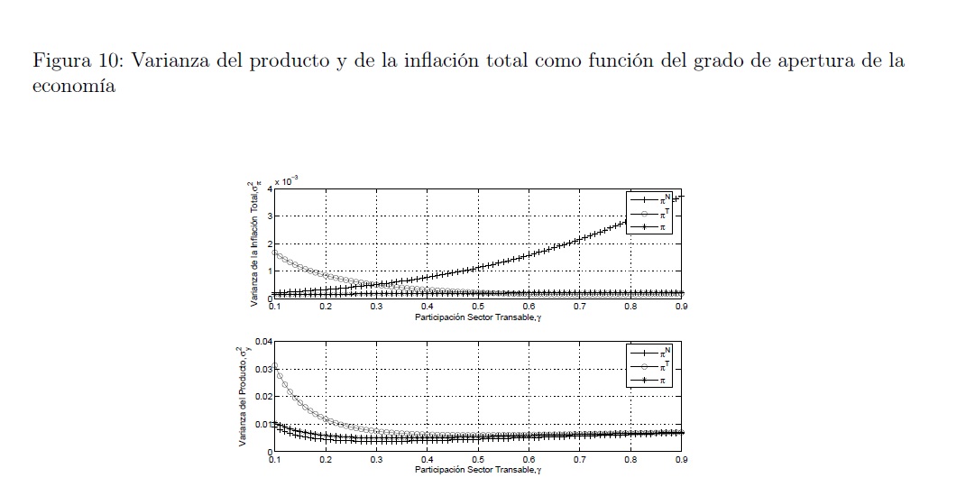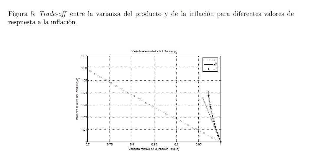 Empleando un modelo de equilibrio general dinámico y estocástico para una economía pequeña y abierta con imperfecciones y rigideces en el sector no transable calibrado para Colombia, se estudia la conveniencia de que la autoridad monetaria fije como medida de inflación objetivo en su función de reacción la inflación total, la inflación doméstica o la inflación externa, en un contexto en el cual la fuente de las fluctuaciones proviene del sector externo y de choques en la productividad en cada uno de los sectores. Dada la existencia de una curva de Phillips aumentada por expectativas en el sector no transable, la política monetaria implica un trade-off entre la incertidumbre sobre la inflación y la variabilidad del producto. Se encuentra que este trade-off varía de acuerdo a la medida de inflación incluida en la función de reacción de la autoridad monetaria. Además, se encuentran los siguientes resultados: Una regla de tasa de interés que responde a la inflación no transable, es la más efectiva en reducir la variabilidad del producto, al costo de tener una inflación total más volátil que en los otros dos regímenes estudiados. En el caso de tener un régimen que responde a la inflación transable se genera más volatilidad en el producto con un nivel de volatilidad medio en la inflación. La política más efectiva para reducir la variabilidad de la inflación total, es aquella en que el banco central responde a la inflación total. Dado que este régimen genera una volatilidad media en el producto, puede ser considerado como el mejor régimen en términos de minimización de la variabilidad del producto y de la inflación total.