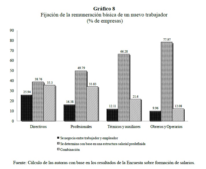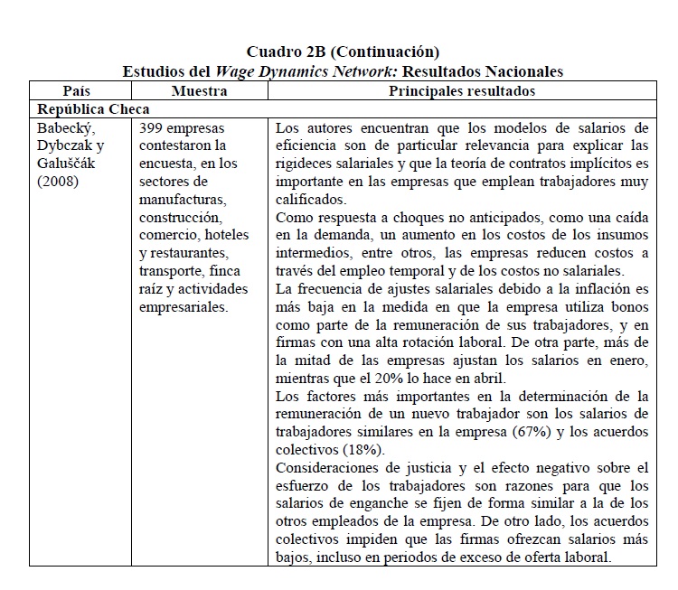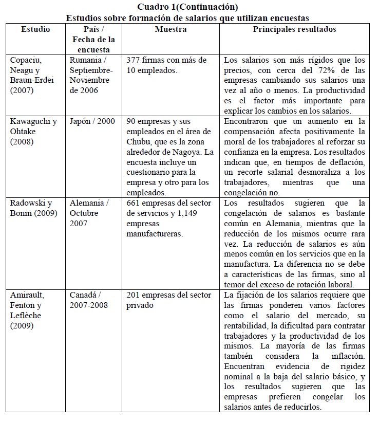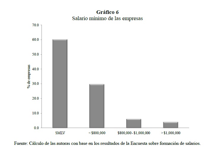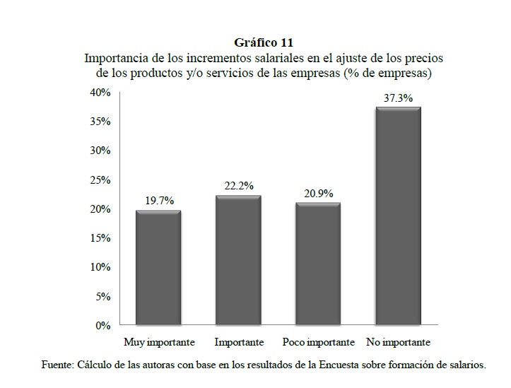 Este estudio explora los mecanismos de fijación e incremento de los salarios, analiza la naturaleza y las fuentes de sus rigideces y evalúa el vínculo entre los cambios en los salarios y la variación de los precios de los bienes y/o servicios de las empresas, a partir de una encuesta a 1,305 firmas colombianas. Los resultados indican que los incrementos salariales son tiempo-dependientes y que la situación financiera de la empresa, su productividad, el desempeño de los trabajadores y la inflación causada son los factores más importantes en el momento de definir los ajustes salariales. Adicionalmente, los resultados de la encuesta apoyan la presencia de rigideces nominales y reales de los salarios a la baja en Colombia y se encuentra que las razones más importante para no reducir la remuneración básica de los trabajadores, en época de difícil situación económica, están asociadas con la teoría de salarios de eficiencia.
