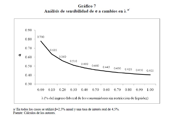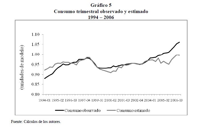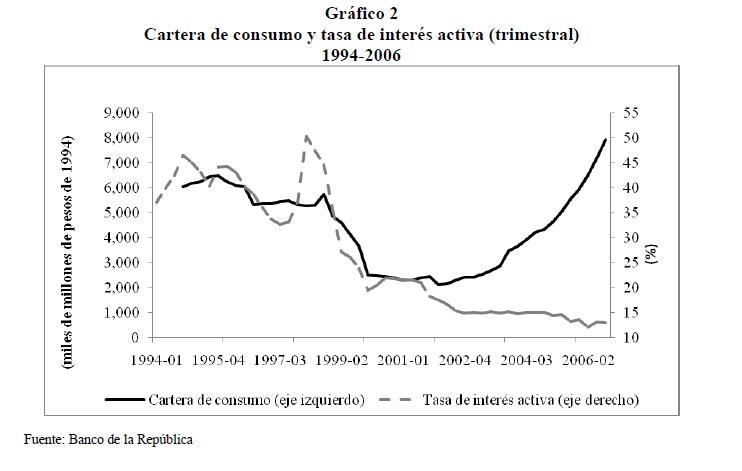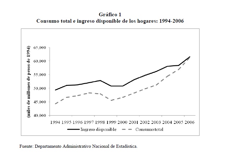 El objetivo de este documento es evaluar el impacto de la política monetaria, sobre el consumo de los hogares colombianos, a través del efecto que ésta tiene sobre la tasa de interés. Para esto, se utiliza un modelo que combina elementos de la hipótesis del ingreso permanente y del ciclo de vida. Adicionalmente, se incorporan restricciones de liquidez debido al poco acceso de la población al sistema financiero en Colombia. El análisis empírico se realiza a partir de un ejercicio de calibración de una función consumo, utilizando información trimestral para el período 1994-2006, en el cual se considera, de un lado, que toda la población tiene acceso al sistema financiero y, de otro, que un segmento de la población no tiene acceso. En el primer caso, la calibración arroja una elasticidad de sustitución intertemporal de 0,405, y se encuentra que un choque inesperado a la tasa de interés de un punto porcentual disminuye, ceteris paribus, el consumo corriente en 0,41%. En el segundo caso, se obtiene una elasticidad intertemporal de sustitución de 0,445, cuando se supone que el 43% del ingreso laboral pertenece a los consumidores con restricciones de liquidez; entre más alto sea este porcentaje, 05r será la elasticidad intertemporal de sustitución.