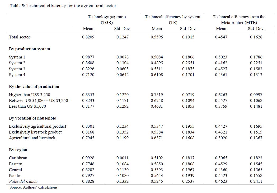 Technical efficiency for Colombian small crop and livestock farmers : a stochastic metafrontier approach for different production systems