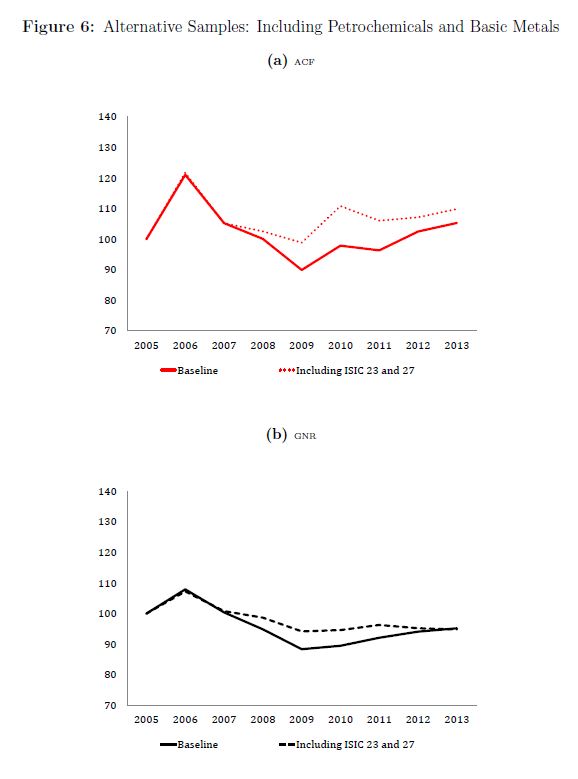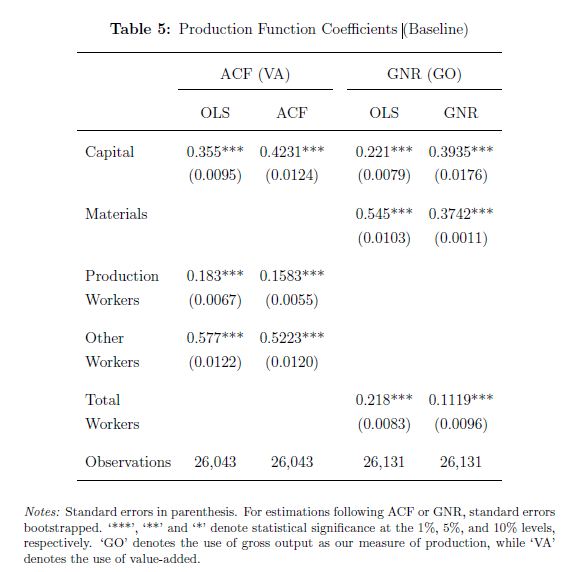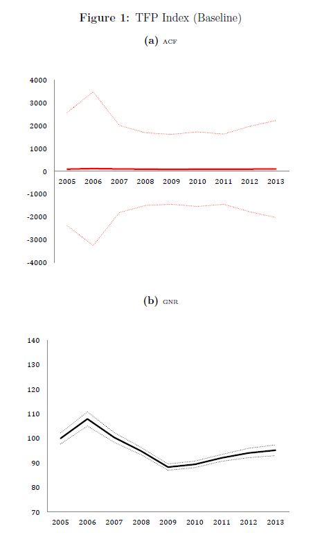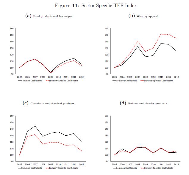 | dc.description.abstract | In this paper we present estimates for the coe cients of a production function, and the corresponding total factor productivity (TFP) for the Colombian manufacturing industry during 2005{2013. We follow several structural microeconometric techniques to es | eng |