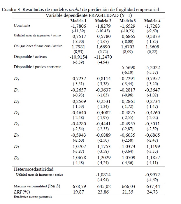 Una de las 05res amenazas para toda empresa es caer en un estado de insolvencia. Este tipo de amenaza a la estabilidad financiera de las empresas es relevante no solo para inversionistas y empleados, sino también para prestamistas del sector financiero, auditores y autoridades reguladoras entre otros. Usando técnicas de regresión probit este estudio desarrolla un modelo en que se identifican las variables relevantes para pronosticar el estrés o fragilidad financiera de las empresas en Colombia en el año 2001. A partir de los estados financieros que 9000 empresas reportaron en el año 2000, el modelo identificó correctamente al 82% de las empresas frágiles y no frágiles. Los resultados confirman la importancia de los indicadores de rentabilidad, endeudamiento y liquidez en la solvencia presentada por las empresas, puntualmente la utilidad antes de impuestos sobre activo, obligaciones financieras sobre activo y disponible sobre activo respectivamente.