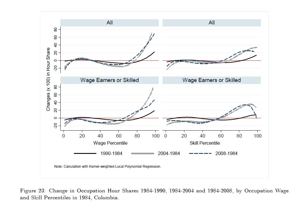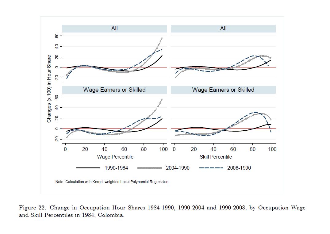 We use occupations descriptions for Brazil, Colombia and Mexico, to build computer-use related tasks intensities, and link then to series of cross sections of data of each country in order to empirically assess to what extent the observed empirical regula
