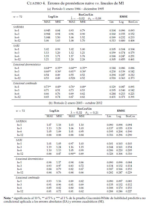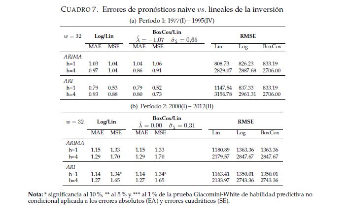 Este trabajo evalúa si las transformaciones de potencia (Box-Cox y en particular logarítmica) de series de tiempo mejoran la precisión de los pronósticos de modelos ARIMA ajustados a variables económicas de Colombia en dos periodos diferentes: 1980-1995 y 2002-2012. Se compara la habilidad predictiva de series en nivel y series transformadas a través de un experimento fuera de muestra mediante el uso de la prueba de habilidad predictiva incondicional de Giacomini y White [2006]. Se encuentra que los pronósticos de las series transformadas, en general, se desempeñan mejor para el periodo 1980-1995, cuando la economía colombiana fue relativamente más volátil que durante el periodo 2002-2012. Para este último tramo de la muestra, los resultados son mixtos y para algunas series se sugiere mantenerlas en niveles; es decir, sin utilizar transformaciones de potencia.
