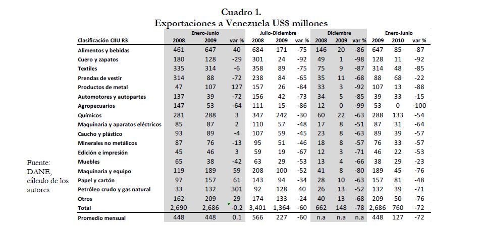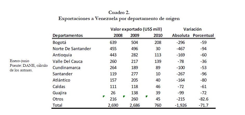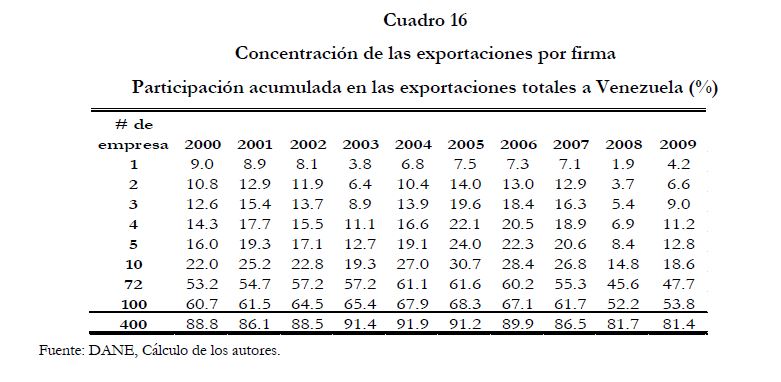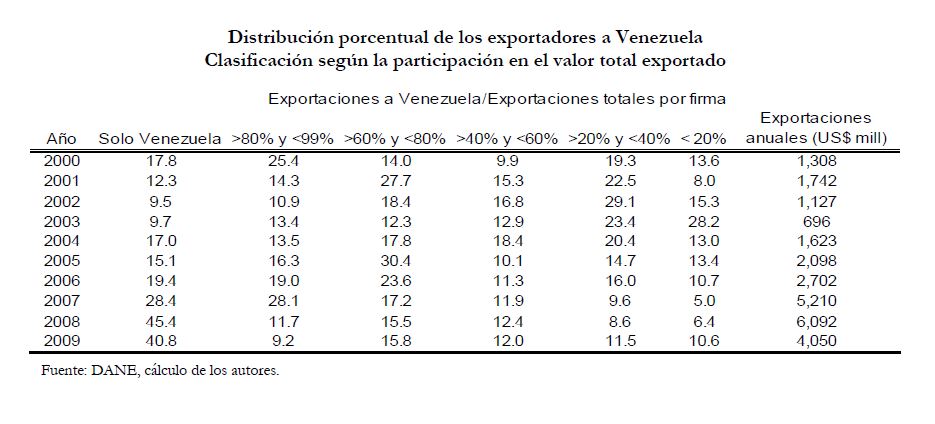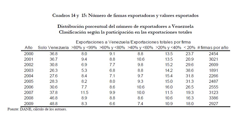 Venezuela como destino de las exportaciones colombianas: evolución reciente y efecto sobre el panorama exportador y las firmas colombianas
