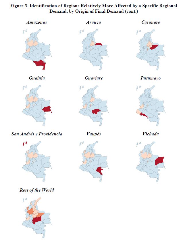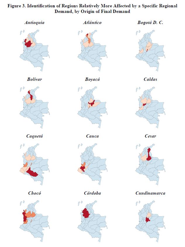 El presente documento presenta un breve resumen de los principales aspectos asociados a la construcción de una matriz de insumo-producto interregional para Colombia. Como parte de un proyecto en curso que tiene como objetivo actualizar un modelo interregional CGE (ICGE) para el país, el modelo CEER, se construyó una base de datos para estimar un modelo de insumo-producto interregional completamente especificado, bajo condiciones de información limitada. Dicha base de datos se requiere para una futura calibración del modelo ICGE. Se lleva a cabo un análisis de las participaciones intra e interregionales de los multiplicadores medios de producto. Por otra parte, también se muestran algunas cifras detalladas sobre la descomposición del producto, teniendo en cuenta la estructura de la demanda final.
