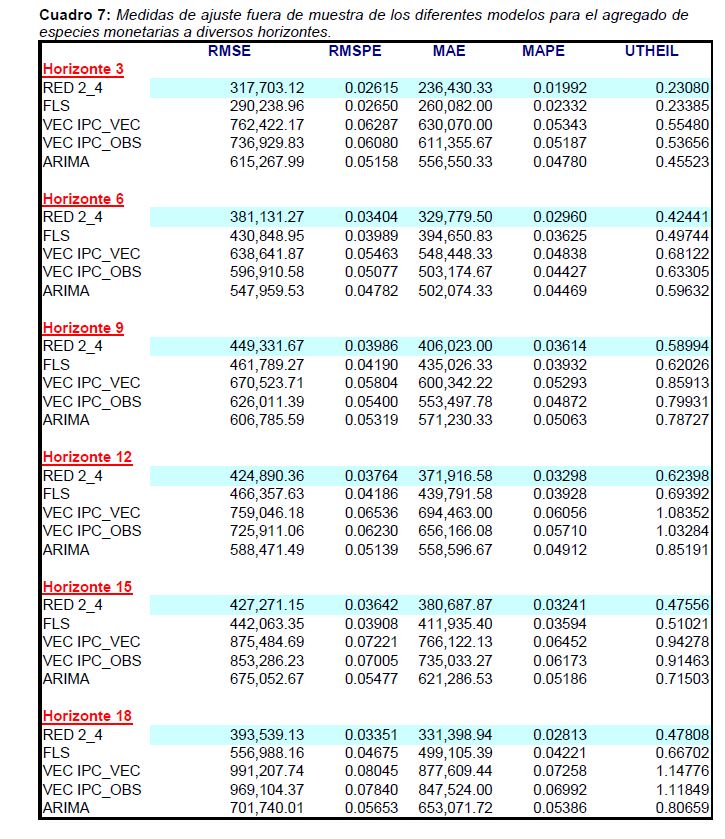 Las tesorerías de los Bancos Centrales enfrentan el problema de pronosticar las necesidades de especies monetarias requeridas por los agentes económicos para finalizar sus transacciones. Dichos pronósticos son utilizados para hacer sus planes a mediano plazo (2 a 3 años en el caso colombiano) de producción, e inventarios de materia prima y unidades terminadas por denominación. El objetivo de este trabajo es evaluar distintas técnicas de pronóstico que sean lo suficientemente flexibles como para incorporar las innovaciones recientes en los determinantes de la demanda y la estructura denominacional de las especies monetarias, y reconocer las posibles no-linealidades en la relación de aquellos con el uso del efectivo. La estrategia seguida se basa en la utilización de redes neuronales artificiales (ANN) y mínimos cuadrados flexibles (FLS), dos técnicas econométricas bastante robustas frente a cambios estructurales y que permiten incorporar elementos no-lineales en la modelación del efectivo.