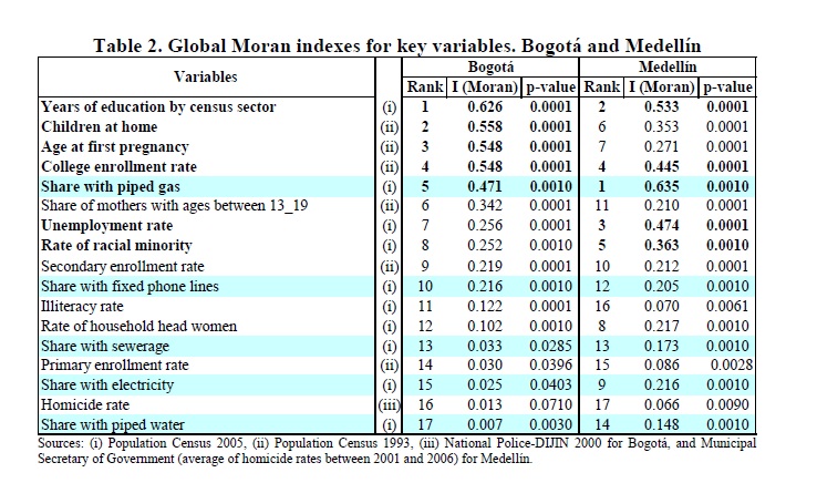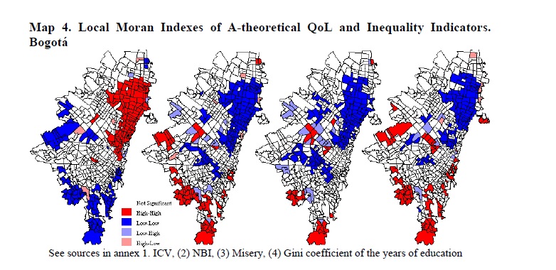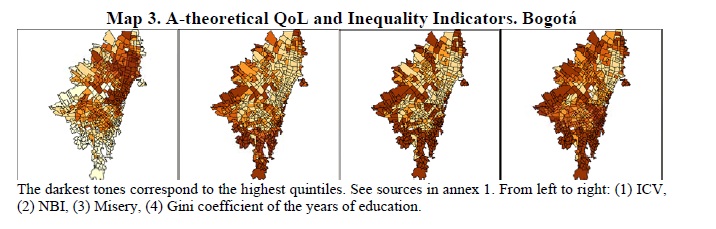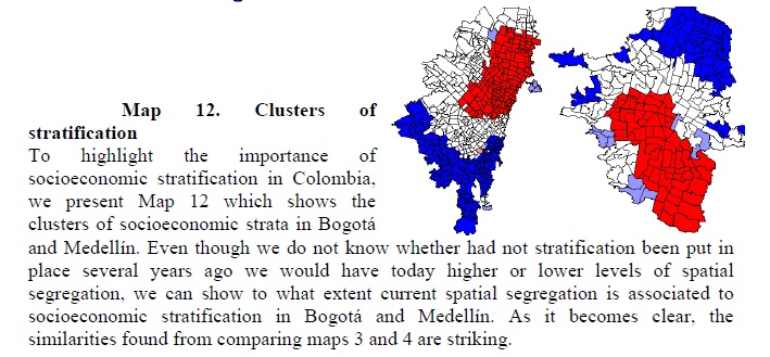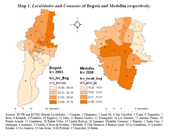 We use data from Bogotá and Medellín to describe key quality of life indicators of each city and illustrate their spatial segregation at the census sector level and present evidence that the main two Colombian cities are highly spatially segregated accord