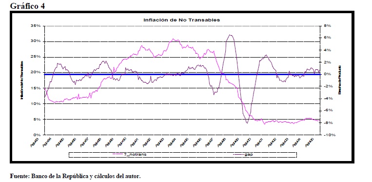 En este trabajo se estiman modelos de corto plazo para pronosticar la inflación de bienes transables y no transables en Colombia. Estos modelos no existían en el Banco Central antes de 2004 y son de gran utilidad para la toma de decisiones de política monetaria. También se evalúan los beneficios, en términos de análisis y de capacidad pronóstico, de utilizar métodos que capturen la posible no linealidad de la curva de Phillips en los datos colombianos. Aunque existen diferentes razones que justifican una relación no lineal de corto plazo entre producto e inflación, cada una de ellas sugiere una forma diferente para la curva. Por esta razón, se utilizan redes neuronales artificiales (ANN) y los mínimos cuadrados flexibles (FLS), procedimientos que tienen la gran ventaja de que no imponen de antemano ninguna forma funcional que pueda sesgar los resultados. Una vez se hace la estimación de los modelos de inflación de transables y de no transables, se comparan los pronósticos de estos dos modelos no lineales con los de dos estimaciones lineales, se analizan las funciones de impulso respuesta de cada uno de los modelos y además se realiza una prueba de no linealidad. Se encuentra que la curva de Phillips en Colombia podría ser no lineal y por tanto resulta pertinente considerar modelos no lineales para su estimación. Finalmente, con estos modelos se intenta explicar el proceso de desinflación que ha vivido la economía colombiana en los últimos años tanto en la inflación de transables, como en la de no transables.
