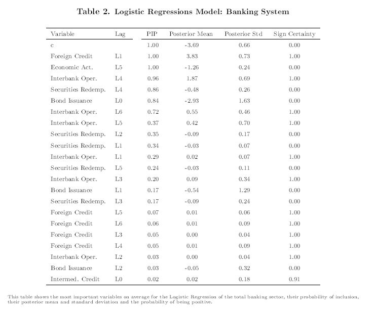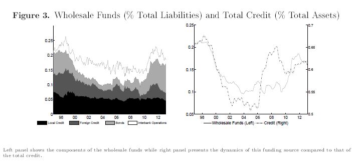 En este documento se estudia la relación empírica entre las fuentes de fondeo del crédito y la vulnerabilidad financiera del Sistema Bancario Colombiano. El trabajo propone la estimación bayesiana de modelos de regresión logística para identificar y predecir episodios de fragilidad bancaria asociados con las fuentes tradicionales y no tradicionales, que utilizan los bancos para proveer crédito. En particular, el ejercicio estima la probabilidad de que se presenten eventos de fragilidad tanto para el sistema bancario agregado como para los bancos individuales con datos mensuales de las hojas de balance para el periodo 1996-2013. Los resultados muestran que el creciente uso de los recursos no tradicionales para fondear el crédito, especialmente en sus fases de expansión, son fuente potencial de fragilidad financiera. Por consiguiente, el monitoreo a dichos recursos, a través de la técnica propuesta, proporciona una herramienta para detectar esos eventos.