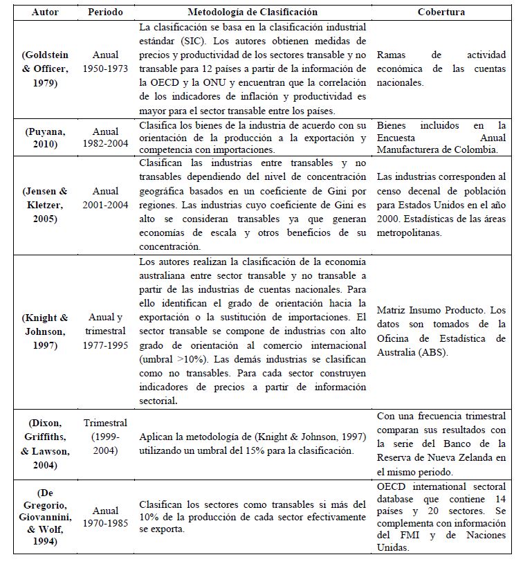 Clasificación de la economía colombiana entre actividades transables y no transables