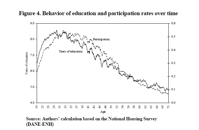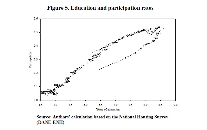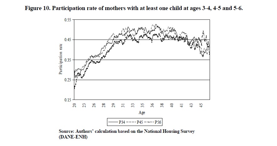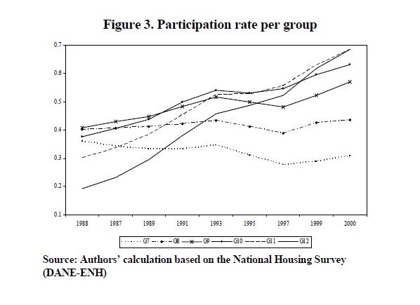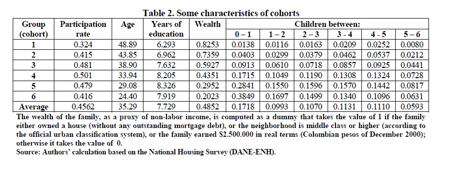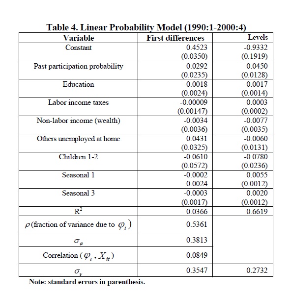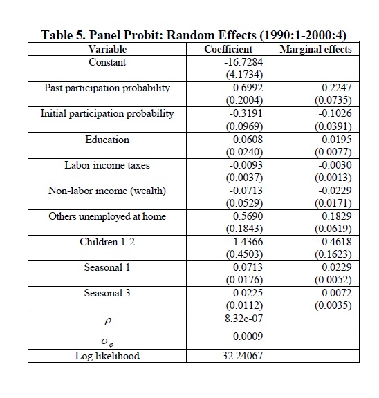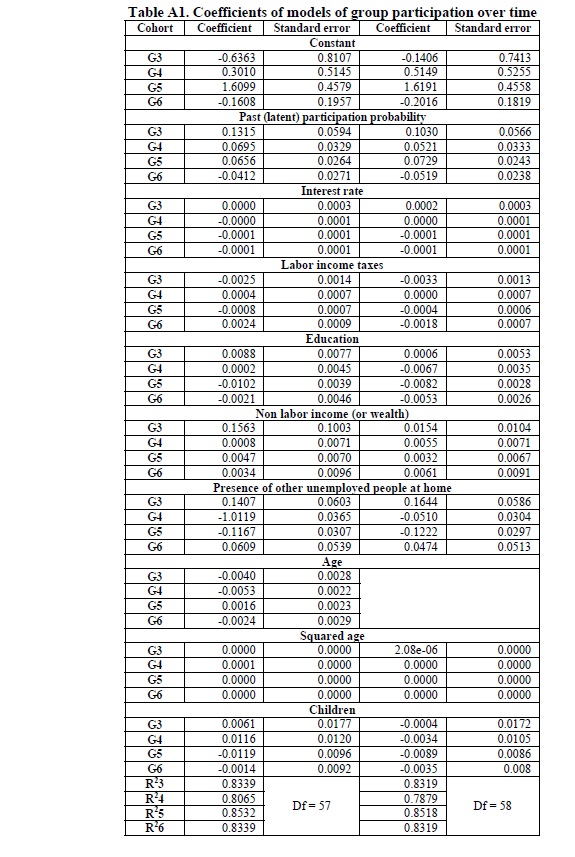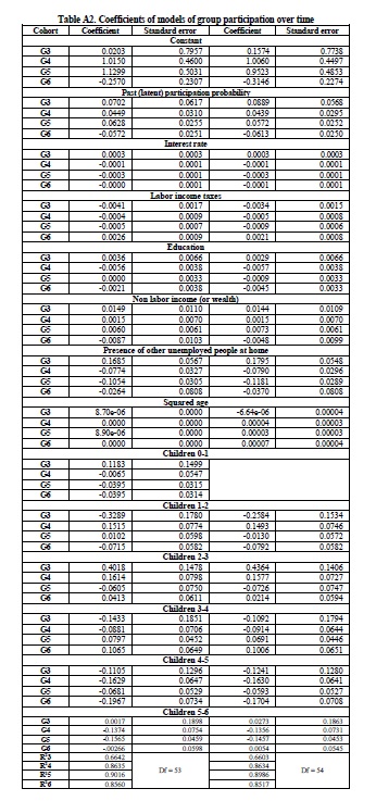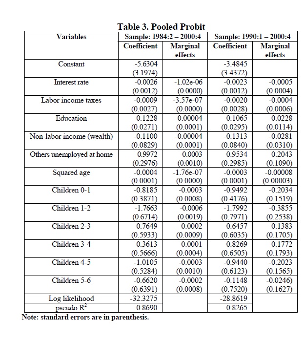 A pseudo-panel was built to estimate the determinants of the labor participation decision of married women between 1984 and 2000. Past participation decisions, education level, labor income taxes, children between 1 and 2 years of age, and the presence of