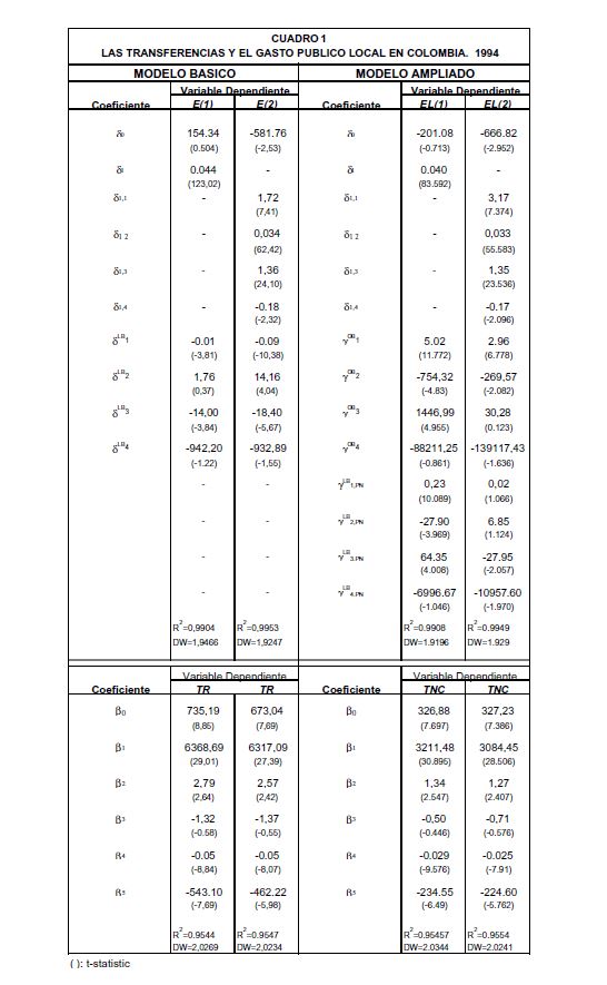 El trabajo evalúa los determinantes del gasto público de los municipios colombianos mediante un modelo estático de escogencia pública local. Los resultados muestran que las transferencias que reciben los municipios de la nación alivian su carga fiscal y, al igual que la deuda, se constituyen en la principal fuente de expansión del gasto. Por su parte, las características socioeconómicas de las comunidades, entre las que se destacan el tamaño de la población con necesidades básicas insatisfechas y la cobertura de servicios públicos domiciliarios, juegan un papel crucial en la provisión básica de bienes públicos locales.